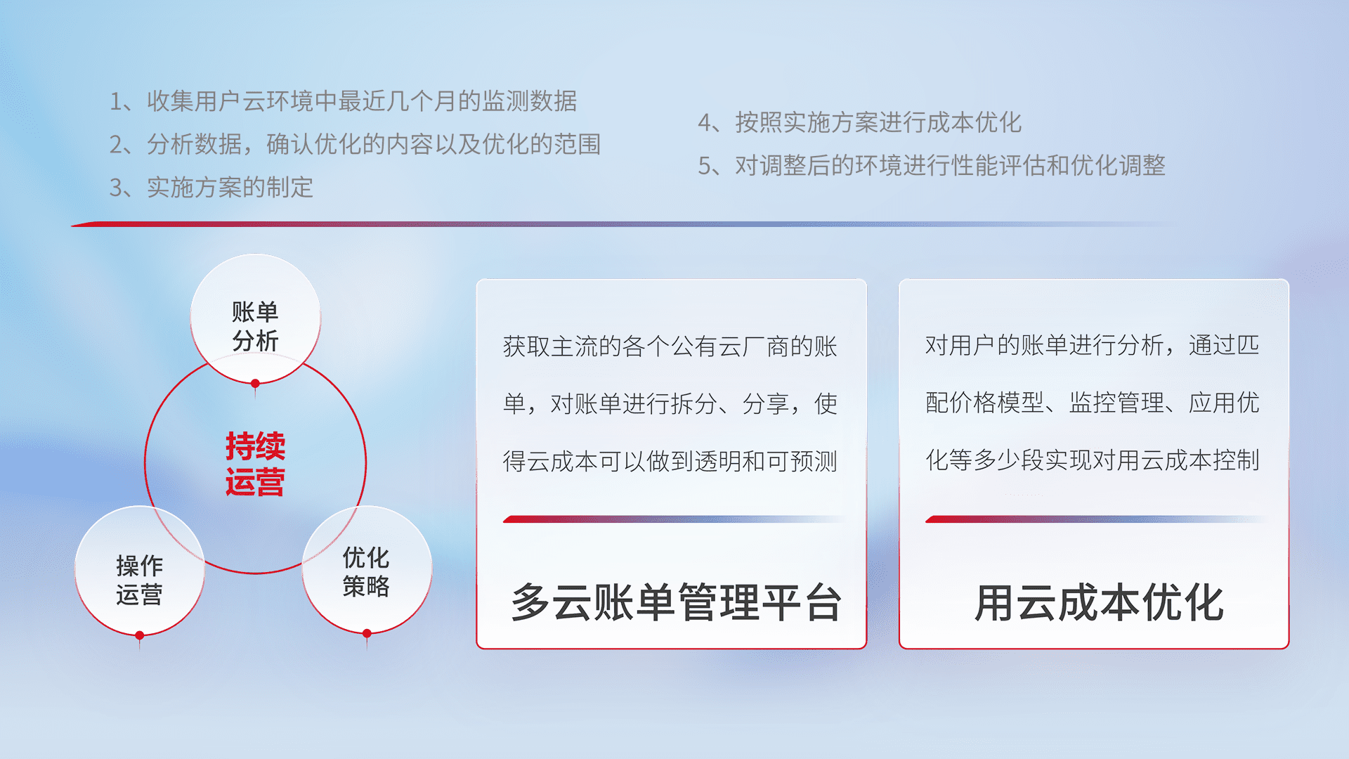 运用智能化工具分析云资源,,,提供日常费用可视化工具,,,,自动账单拆分,,,,成本优化云上费用,,降本增效。。